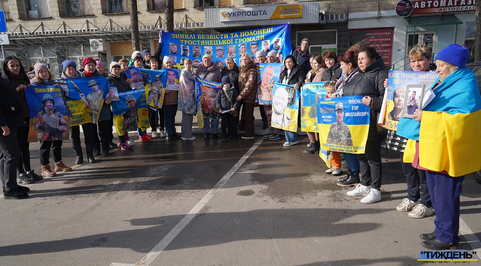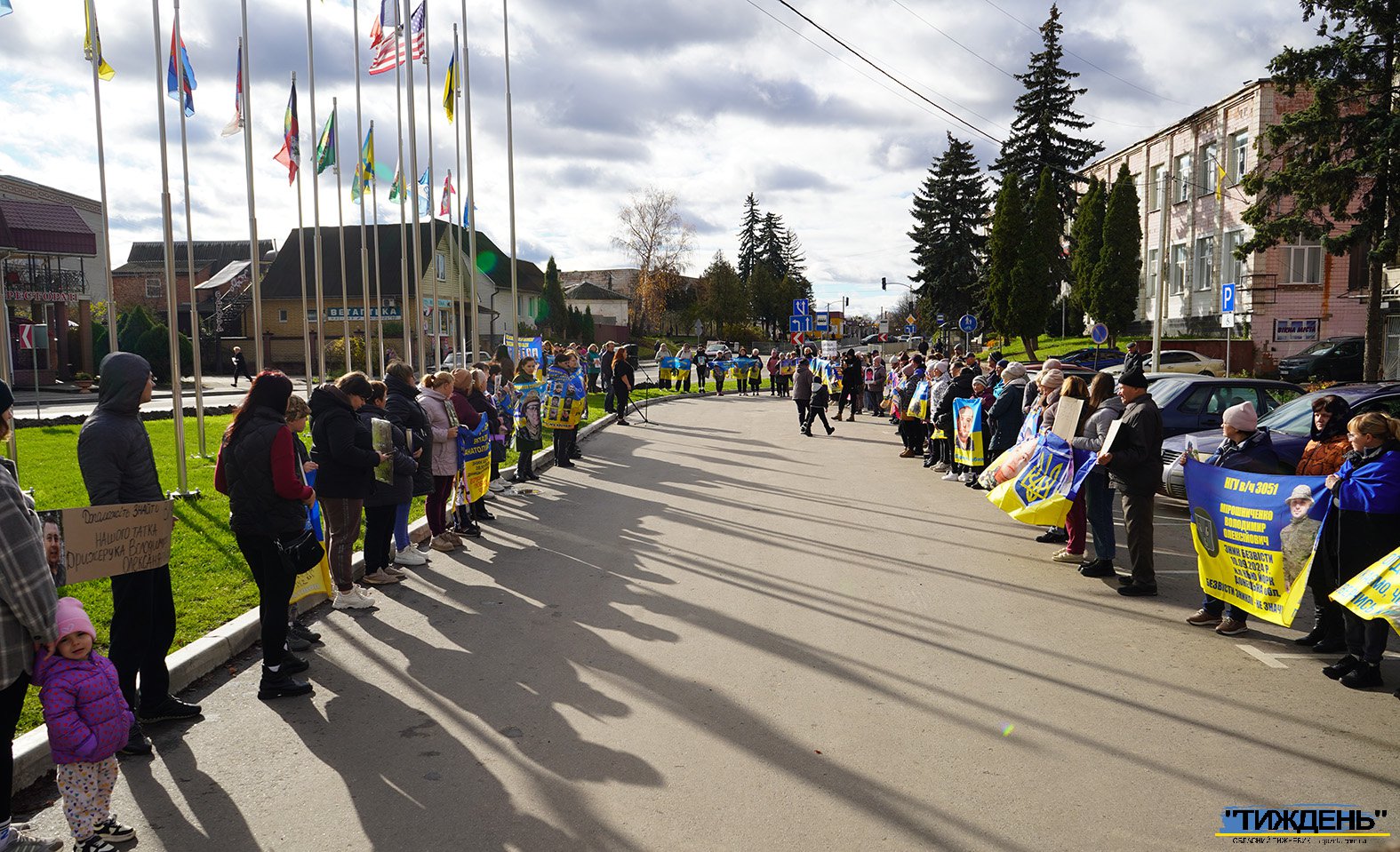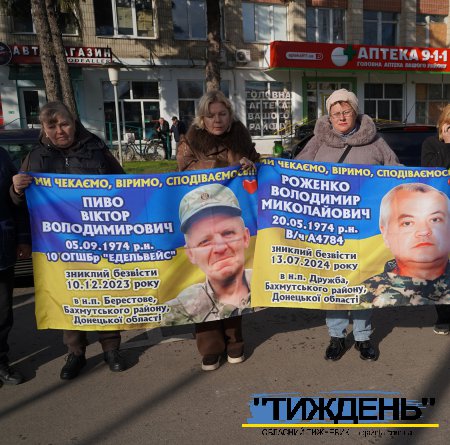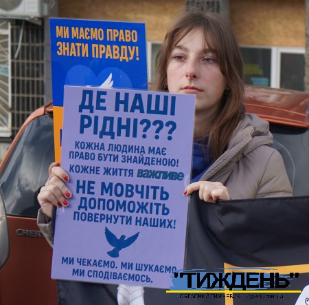 Майже у всіх учасників акції в руках - світлини тих, кого росія взяла у полон, а також промовисті плакати у національних кольорах зі зверненнями. Ось деякі з написів на них: «Де наші рідні?», «Ми маємо знати правду!», «Поверніть рідних додому», «Поверніть безвісти зниклих героїв додому!», «Невідомість вбиває» та інші. І на кожному такому плакаті прізвища тих, хто томиться в російскому полоні.