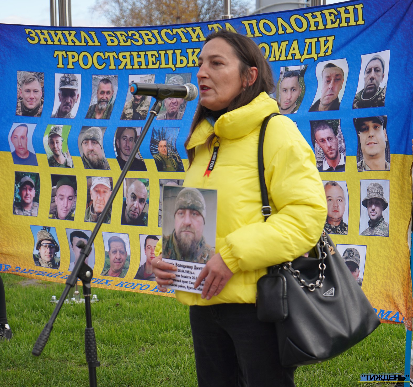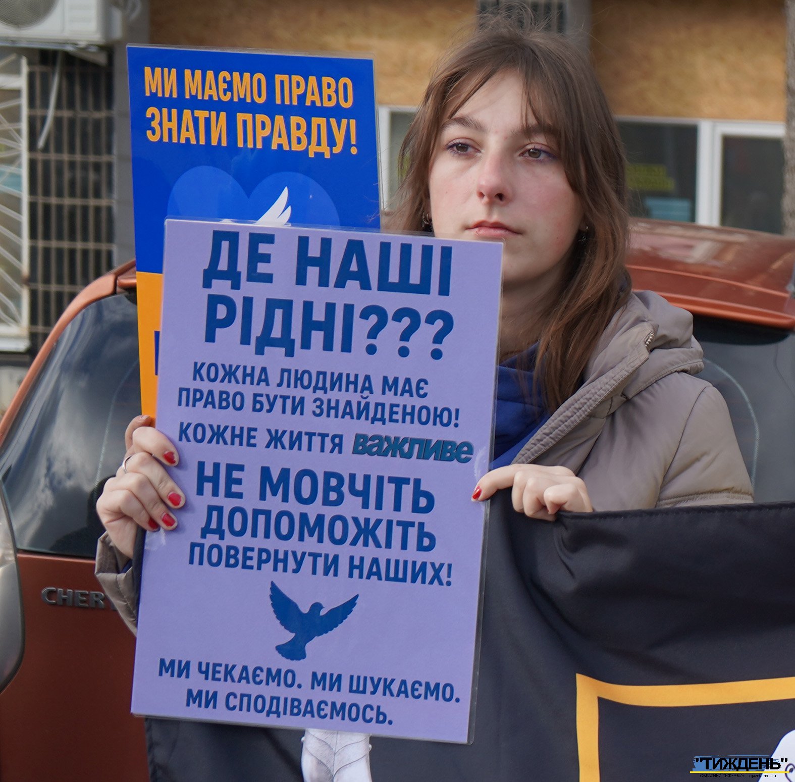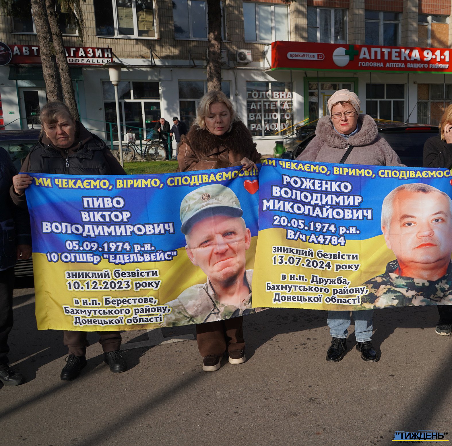 Майже у всіх учасників акції в руках - світлини тих, кого росія взяла у полон, а також промовисті плакати у національних кольорах зі зверненнями. Ось деякі з написів на них: «Де наші рідні?», «Ми маємо знати правду!», «Поверніть рідних додому», «Поверніть безвісти зниклих героїв додому!», «Невідомість вбиває» та інші. І на кожному такому плакаті прізвища тих, хто томиться в російскому полоні.