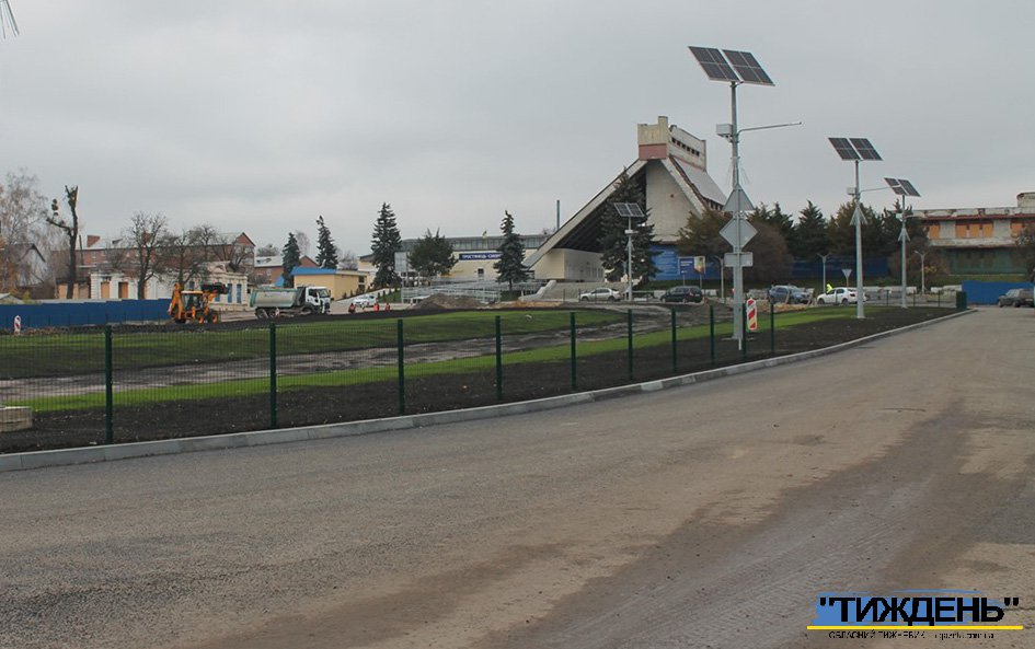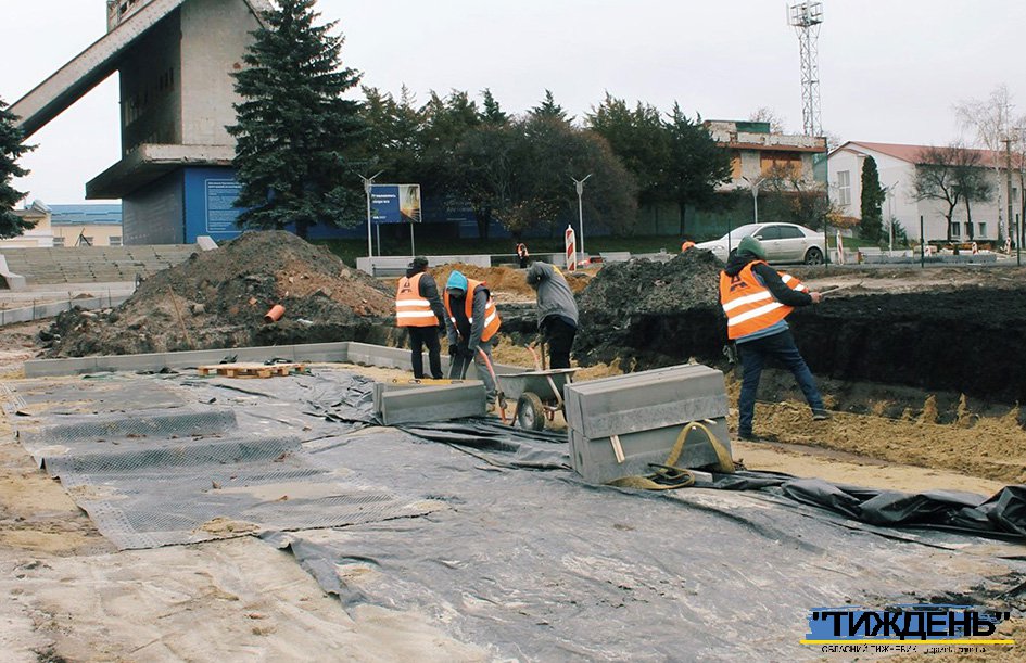 Прихід холодної осені не зупиняє роботи на привокзальній площі міста Тростянець, що на Сумщині, яка реконструюється в рамках урядової програми відновлення малих міст, які найбільше постраждали від російської агресії. Працюють будівельні бригади, потужна техніка.