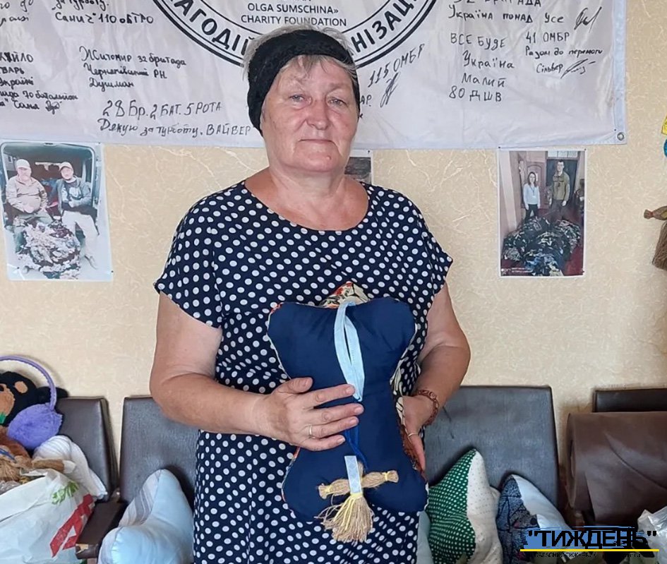 Ця війна відібрала у неї найдорожче: чоловіка і сина. Але щоб не зламатися від горя, вона знайшла наснагу жити далі у занятті, яке також пов`язане з війною, але яке надихає - волонтерство. Вже четвертий рік поспіль свої сили Тетяна Іванівна Замула віддає на боротьбу з росіянами, готуючи своїми руками маскувальні сітки, подушки, збираючи донати для воїнів Збройних сил України.