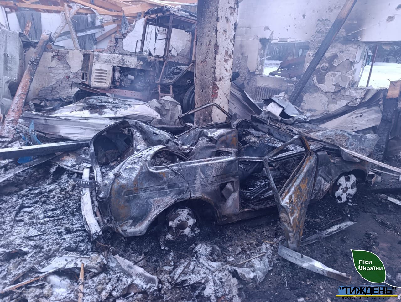 Внаслідок атаки трьома «шахедами» пошкоджено офіс лісництва – вибиті вікна, зруйновані господарські приміщення.Вщент знищені гаражі, де зберігалася техніка. Постраждав автопарк лісництва, зокрема і новий трактор, який Тростянецьке надлісництво отримало в межах інвестиційної програми ДП «Ліси України».