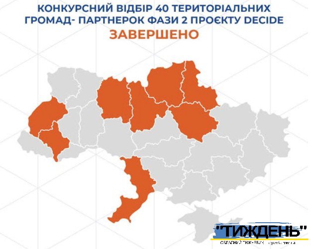 До Конкурсної комісії надійшла 231 заявка від територіальних громад восьми областей-партнерок. Після двох етапів відбору — аналізу заявок, співбесід, експертного оцінювання та зустрічей із управлінськими командами громад — було обрано 40 громад, які долучаться до реалізації другої фази Проєкту DECIDE у 2026–2030 роках.